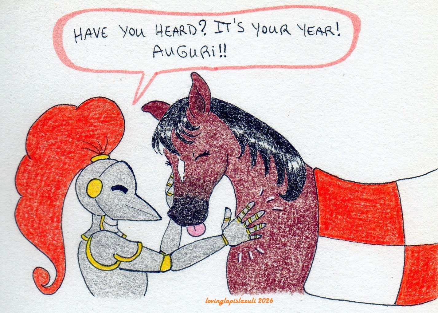 A ghost knight who really has no clue who he used to be, called himself Woody because his own armor reminds him of a woodpecker! He's quite fond of birds and interacting with them brings him joy. He's currently hanging around at the archive, where A.V. is introducing him to the wonders of modern technology XD He has a horse companion, but the darling steed is free to roam as she pleases and can be spotted around the hallways of the Archive like a very graceful bigfoot.